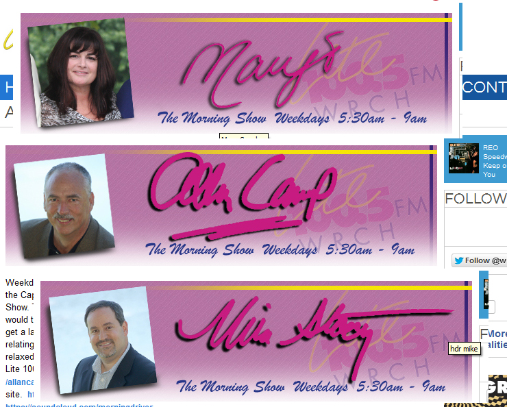 | Allan Camp, Mike Stacy & Mary Scanlon on WRCH-FM (AC) |